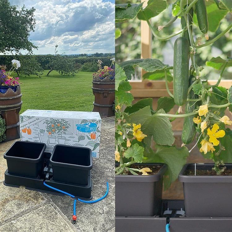 イージー2グロウは多用途に使用でき、さまざまな作物を栽培できます。ハーブやイチゴのような背が低くてフサフサした品種にも、背の高いツル性植物にも最適です。ブドウ栽培のレイアウトは通常、複数のキットを庭や温室に端から端まで並べることで実現します。一度組み立てればリザーバーに水と液体肥料(必要な場合)を入れ、リザーバーをトレイよりも最低15cm高い場所へ設置し適切な重力圧をキープするだけで、植物のライフサイクル全体を通してフレッシュでバランスの取れた栄養供給を行います。
