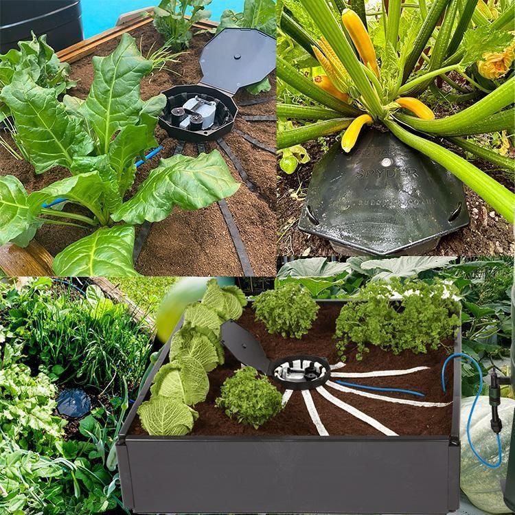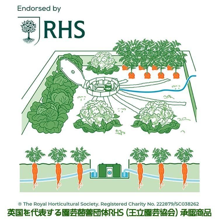 アクアボックス スパイダーは正方形のプランター・レイズドベッド・区画菜園に最適な電気・ポンプ・タイマー・水道接続を一切不要とし、培地へダイレクトに設置する自動散水システムです。培地へキャピラリーマットを埋め込むことで、毛細管現象を利用し周囲の土壌に水と養分を供給します。アクアボックスは必要な時にのみキャピラリーマットへ水を供給します。数日から数週間にわたり電源不要で植物に水を与え続けるため、週末の外出時・休暇中・あるいは通年を通じた水やりにも最適な低メンテナンス灌漑ソリューションです。